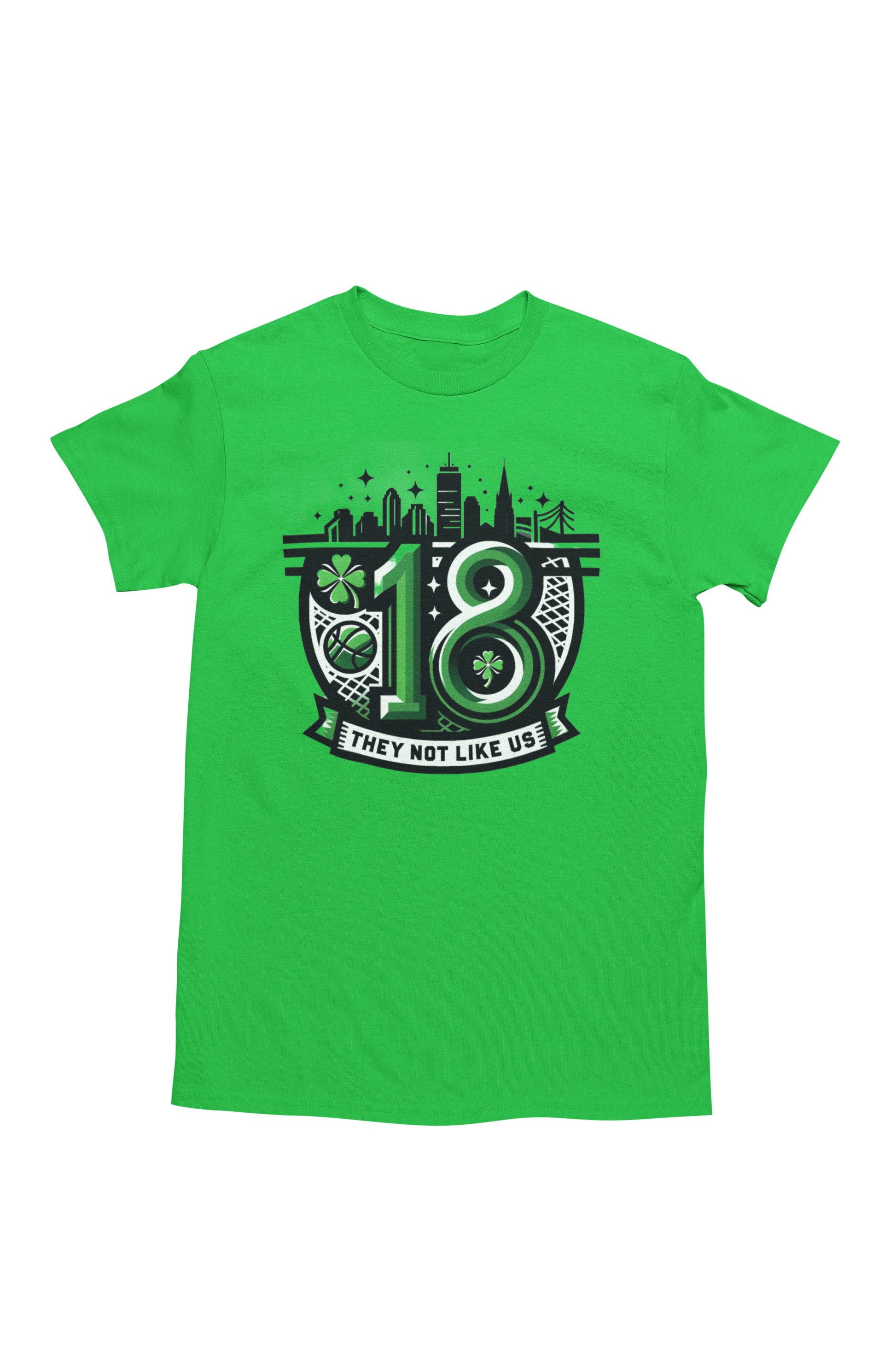 Celebrate the Boston Celtics' historic championship with the 'They Not Like Us Banner 18' green t-shirt. Show your team pride in style with this exclusive design commemorating this remarkable achievement.